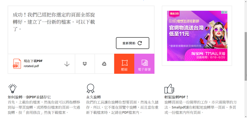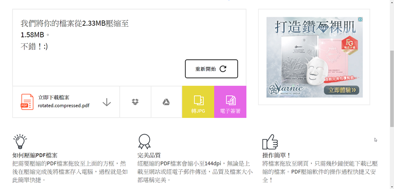處理後可以直接到壓縮或是電子簽名,來壓縮看看。