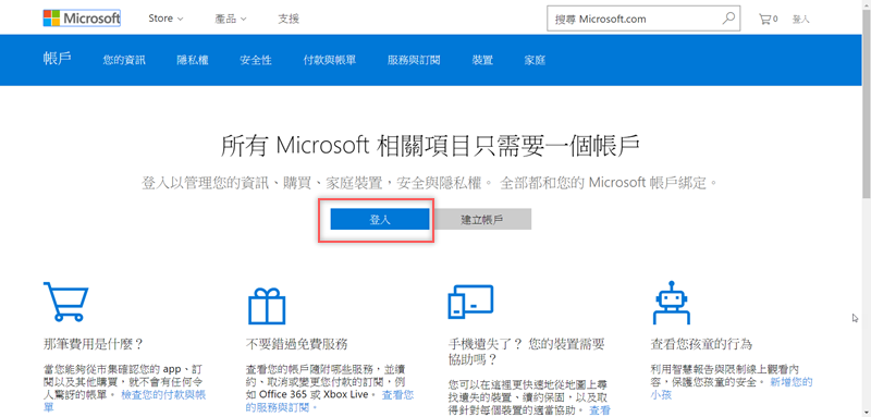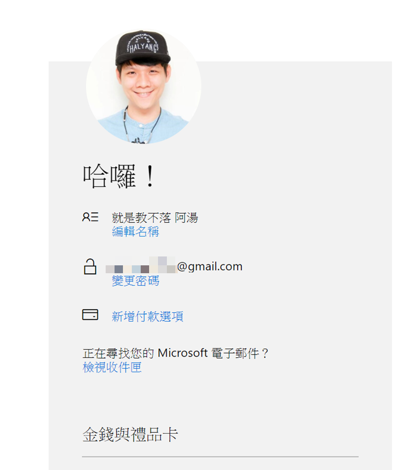 到電子郵件與 APP 帳戶來更改微軟帳號資訊。