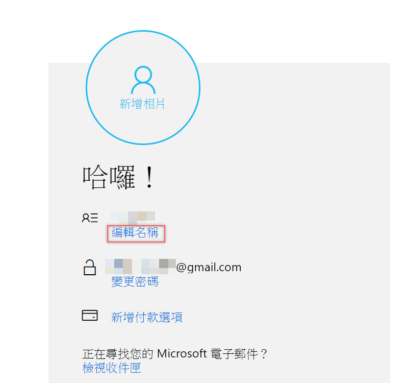 登入後可在左邊看到個人資訊,點「編輯名稱」。
