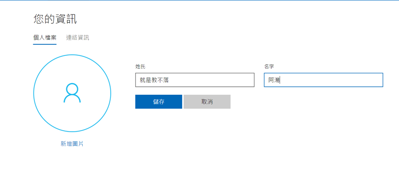 輸入姓氏、名字,用不像姓氏的名稱也沒差不會不能用,再新增個人圖片。