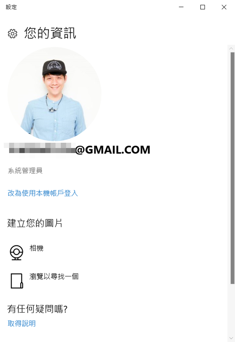接下來改個人電腦裡的圖片,預設也不會放圖,一樣進入設定 → 您的資訊,有裝鏡頭的可以直接拍照或選擇圖片。