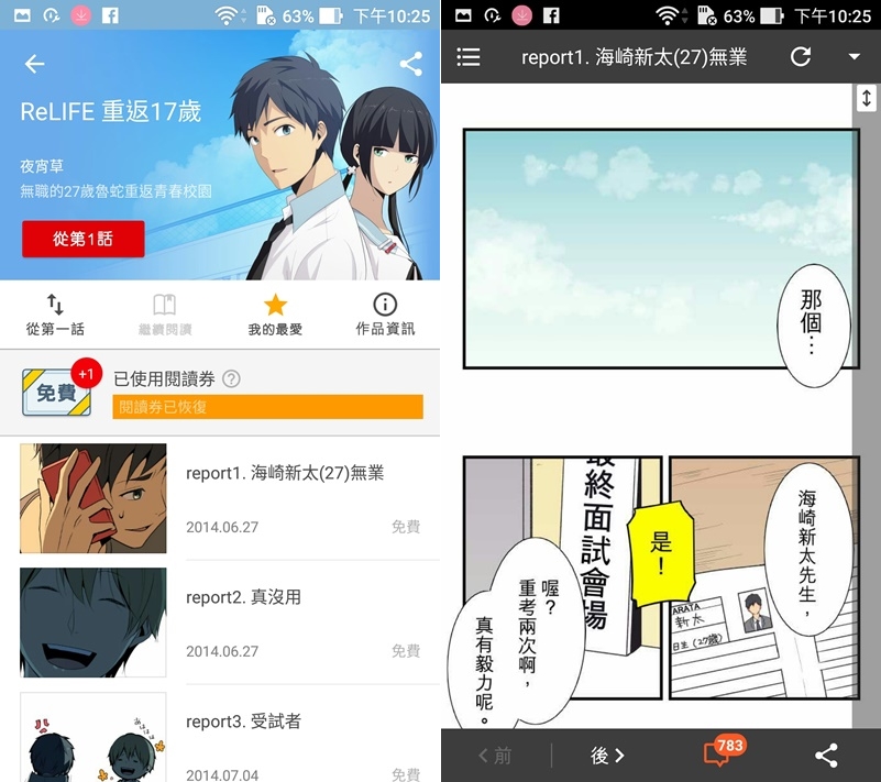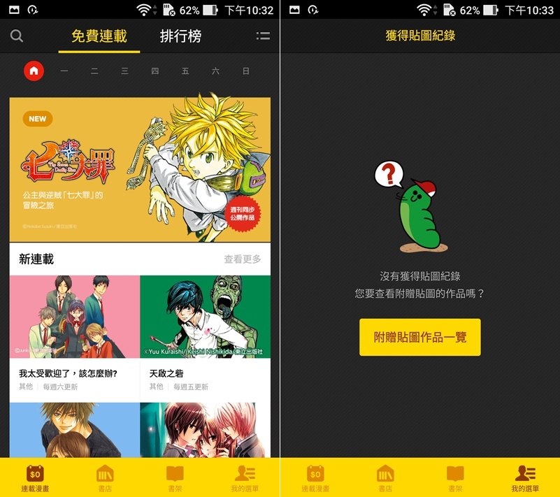 這個 APP 之前阿湯會想下載是因為會送 Line 貼圖,但也正因如此和上面的 LINE WEBTOON 一樣要跟 Line 連動,優點是如果換手機,只要登入帳號還是可看之前下載的內容。