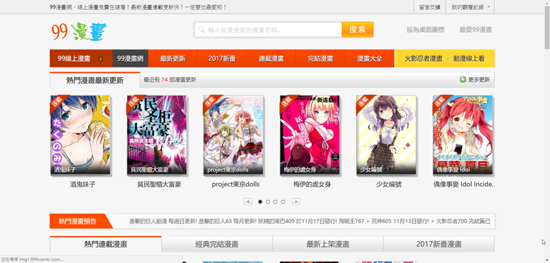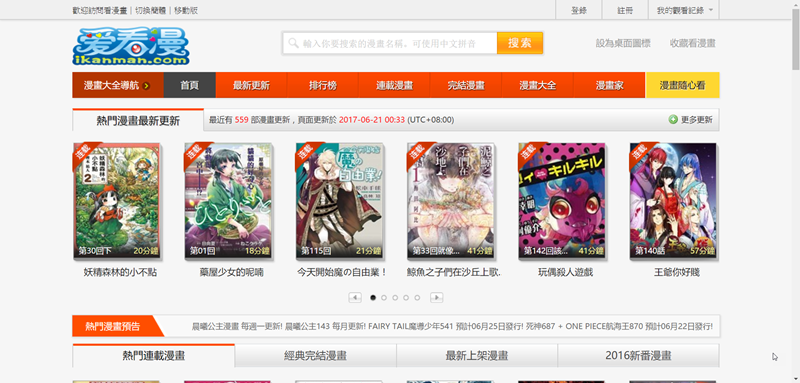 也是以知名漫畫為主,不過縮圖的質感很差,也有連載中的漫畫,更新速度蠻快的。