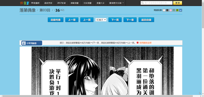 新一點的漫畫解析度較佳,尤其彩色版,但還是沒有 APP 好(看了那麼多網站,全部沒有 APP 的解析度高),可開燈改背景,滑鼠操作,上下改頁數、左右改卷別,加載速度快不用等。