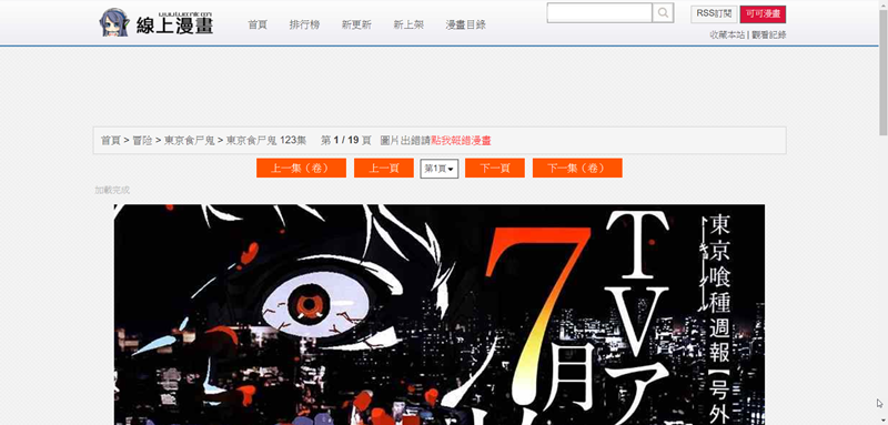 到了網頁閱讀的部分了,這個網站很多經典漫畫,可從類別或國別搜尋,還有歐美、韓國的漫畫,收集了不少書籍。