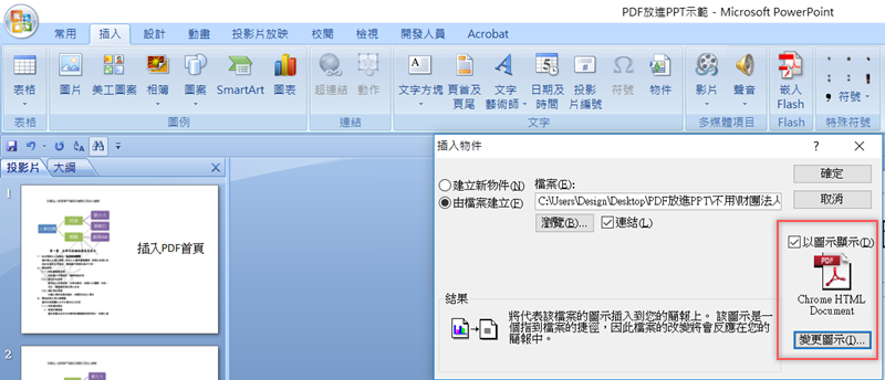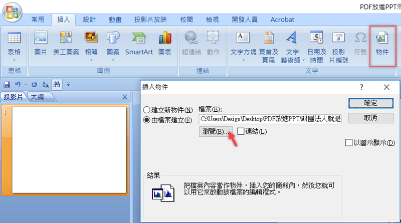 將 PDF 檔放進 PowerPoint 中的方法