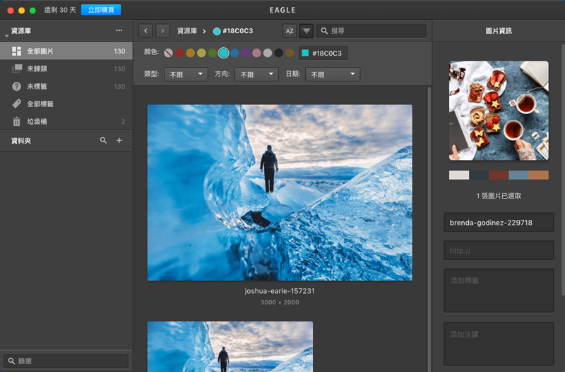 電腦用久了一定會收藏一堆圖片,如果沒有好好管理或是分類不確實常常會找不到,要用的時候要多花時間再尋找與拼湊,如果想重新從網路下載也怕找不到連結,或者下載了一堆同樣的圖片自己不知道…阿湯今天要介紹「Eagle」這個好用的圖片管理工具,使用資料夾、標籤、顏色等方式歸類與篩選,並提供擴充套件功能可輔助使用,繁體中文介面簡單好操作,使用習慣後要再找圖就輕易許多,很受設計行業的朋友喜愛。
