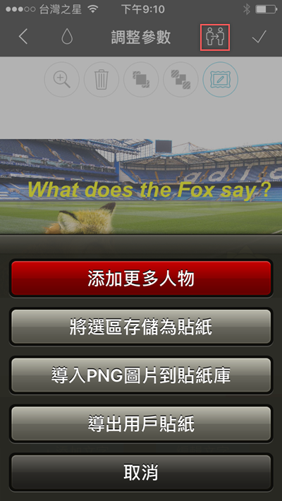 還可添加人物、存成貼紙、導入 PNG 圖片到貼紙庫、導出貼紙等。