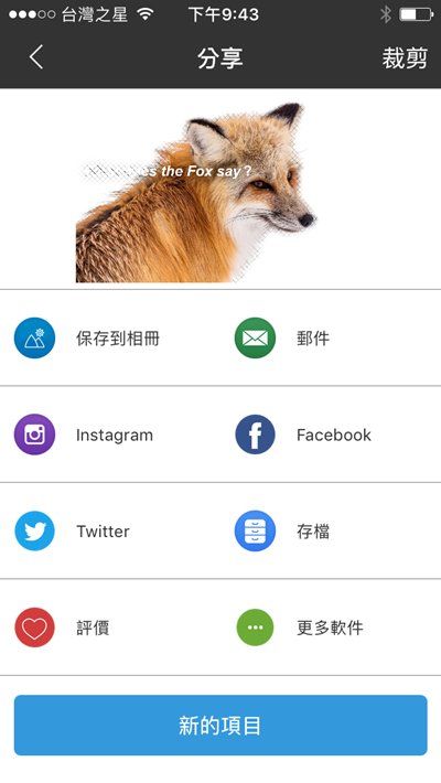 最後可保存到相冊、寄出郵件,或分享到臉書等社群。