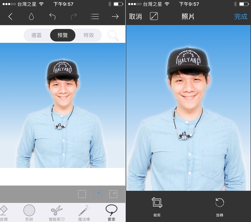 證件照的功能可從首頁直接進入,或是去背後再選擇這個背景模式,如果懶得處理邊緣,可以乾脆羽化調整,再裁剪成適當的尺寸。