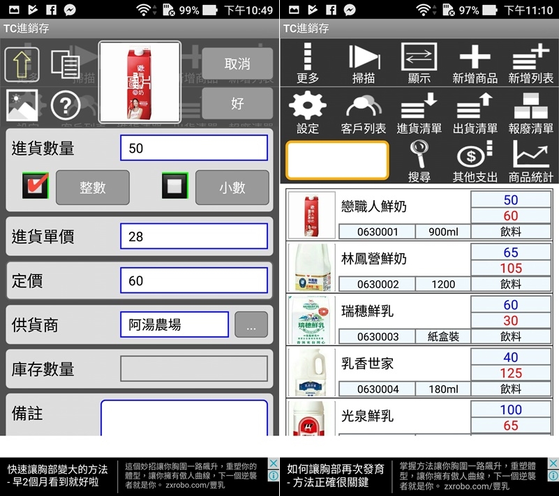 賣場的貨物管理大部分都是用電腦,像一些知名大賣場、百貨公司、便利商店據阿湯所知都是用很傳統(老舊)的系統在管理,其實如果你是自己開店或是擺攤,可以試著用 APP 來統計,像今天介紹的「TC 進銷存」,就可以用手動輸入結合掃描的方式新增商品或列表,並製作進出貨清單,盤點物品時可隨身拿著手機紀錄,還會依照輸入資料自動統計收支、利潤、虧損等,蠻方便的。