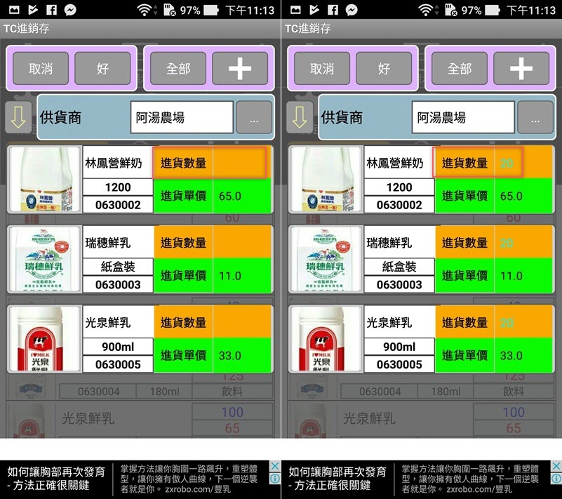 輸入每項商品的進貨數量,完成就點左上角「好」。