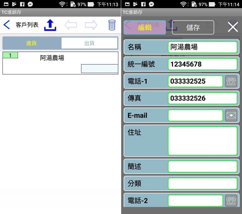 從首頁可進入客戶列表來編輯統編、地址、電話等相關資訊。