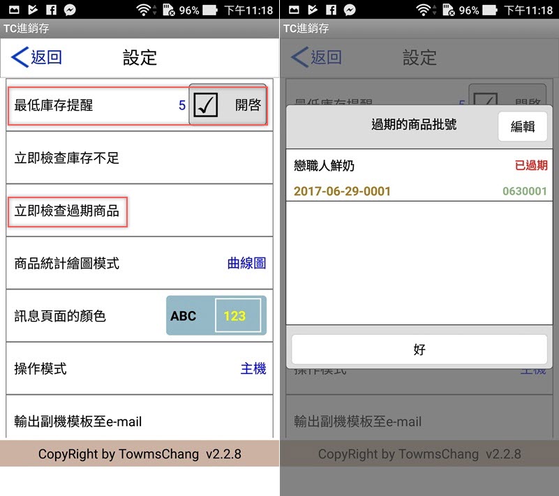 在設定區可設最低庫存提醒以維持貨物充足,並隨時檢查有哪些過期的商品。