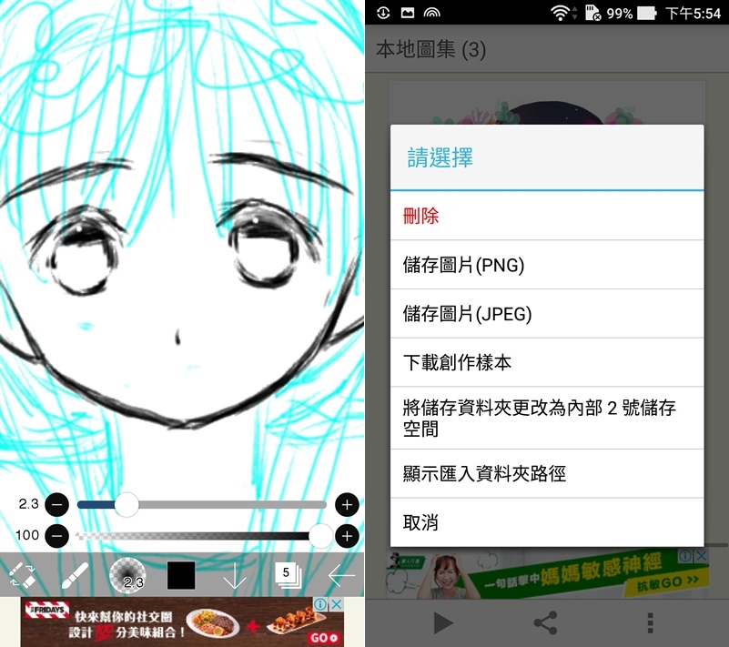 還能直接將圖片儲存或下載為樣本,一步一步學著畫。