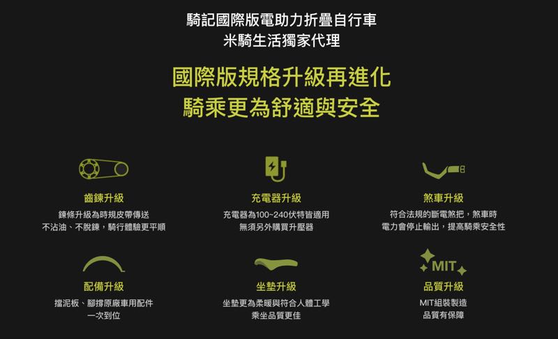 這款號稱為國際版的電助摺疊自行車目前已經在「米騎生活」官網上進行預購,功能升級上包括有增加