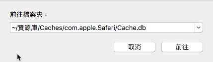 然後將這段文字複製貼到空白列「~/Library/Caches/com.apple.Safari/Cache.db」。