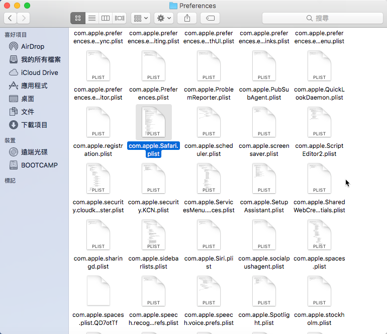 往下找到「com.apple.Safari.plist」刪除即可。