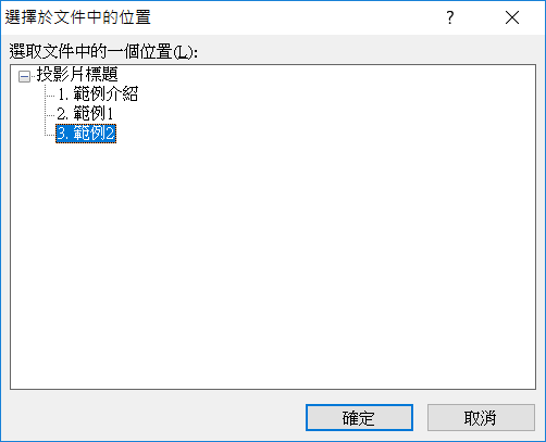 選擇你要的位置,例如阿湯希望點開來是「範例 2」,點確定。