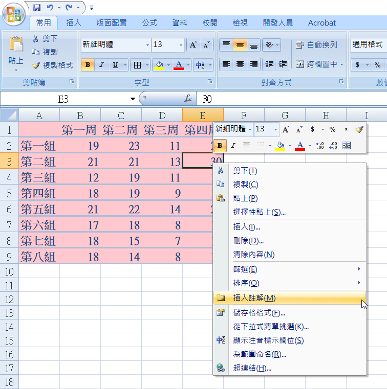 第二種是直接在儲存格按右鍵 → 插入註解。
