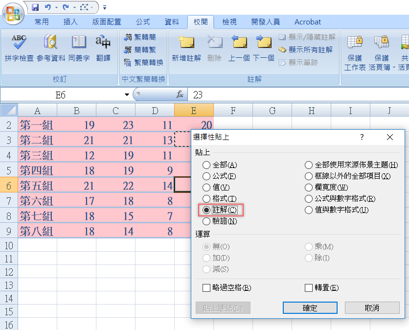 如果其他儲存格也需要相同的註解,就按右鍵複製,貼上的時候選擇性貼上「註解」即可。