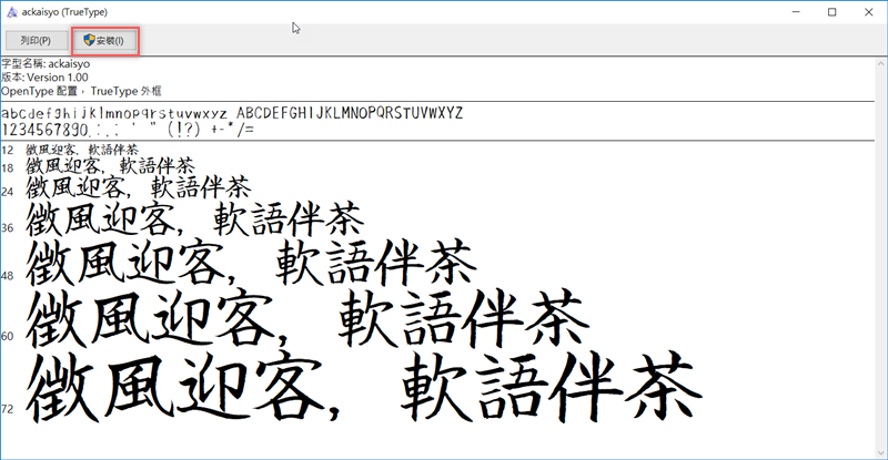 例如這段文字,轉換過後只有兩個字無法套用,其他包括英文都有顯示出來,蠻特別的書法風格,喜歡就來下載吧。