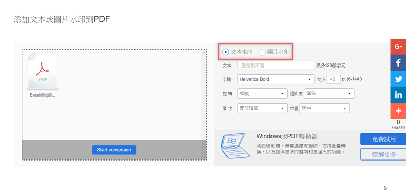 宣示版權用的浮水印也可選擇圖片或文字,字體大小、角度、位置當然可以任意調整成想要的樣子,Windows、Mac、Linux 系統都有支援 。