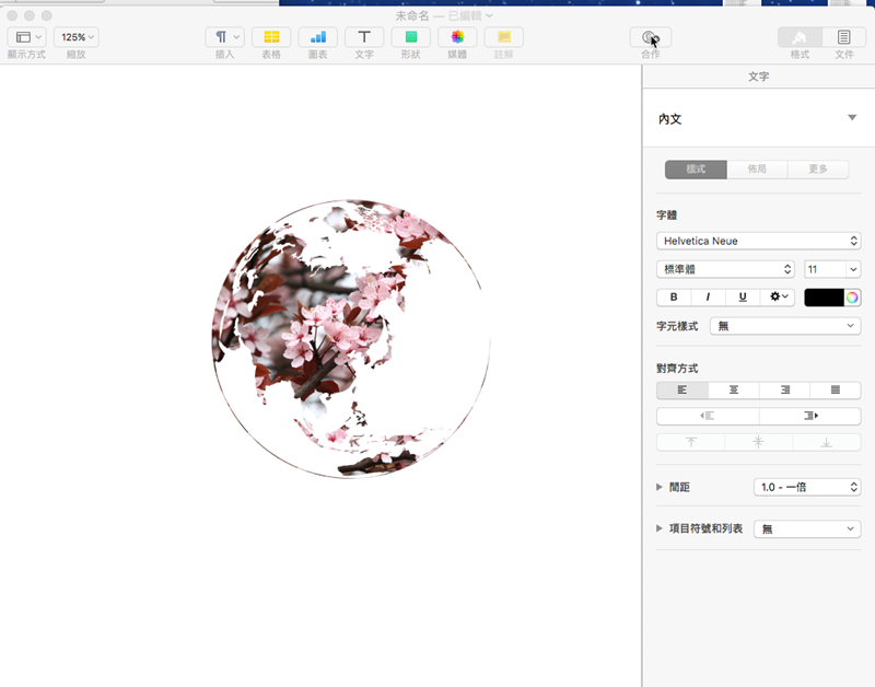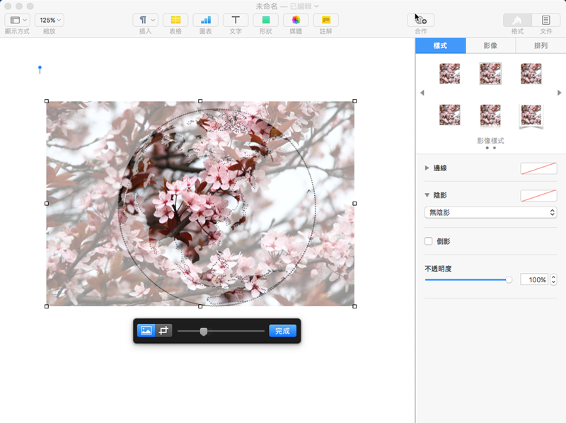 如果你是 Mac 初學者,很可能會找半天找不到你的 iWork,請進入 App Store 搜尋相關程式像是 Pages、Numbers、Keynote 這三組,打開任意一種新增空白文件,點上排「形狀」選擇加入,例如圓形好了,然後再將用來裁切的圖片拖進去。