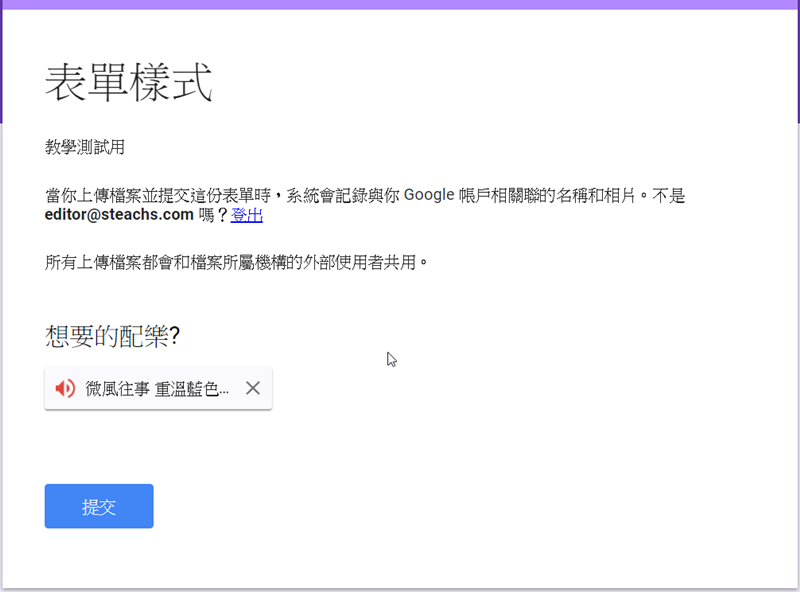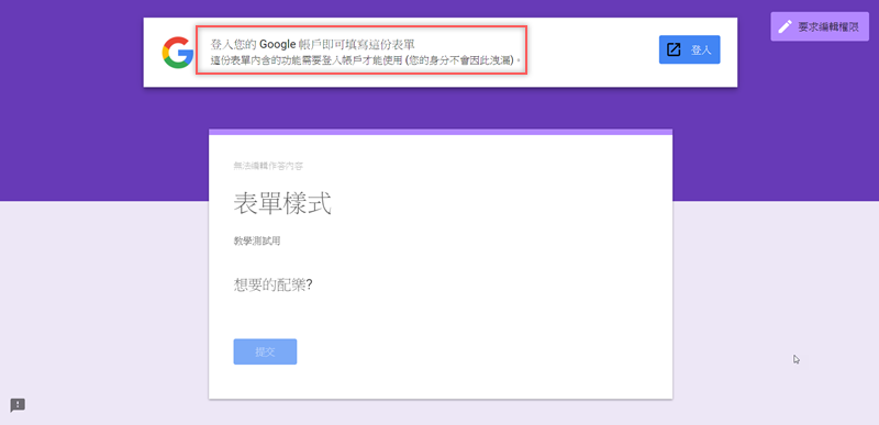 拿到表單的人在填表前就會被要求登入帳戶才能作答。