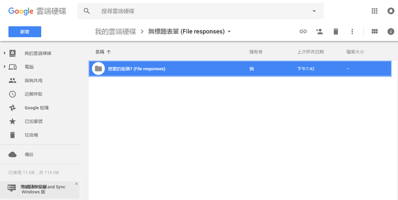表單的建立者會發現在雲端硬碟自動多了一個資料夾,內容就是大家的回覆,上傳的檔案都會在這裡,管理起來非常方便。