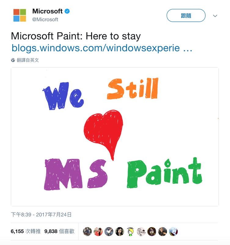 事實上 Microsoft 也推出了加入 3D 繪畫應用功能的 Paint 3D 小畫家應用程式,雖然有著想要以此來取代有著 32 年歷史的小畫家的想法,但在經過今天早上眾多網友的現身力挺,也讓 Microsoft 不僅大感意外之外還受到許多感動後做出了這樣的「復活」宣告!