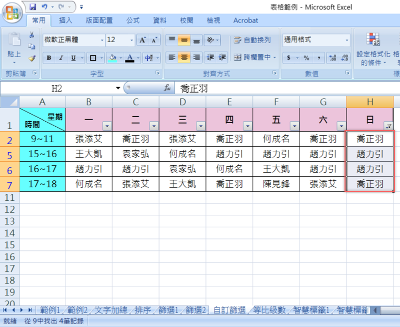 結果考績甲等的人名就會被篩選出來,共 8 位。