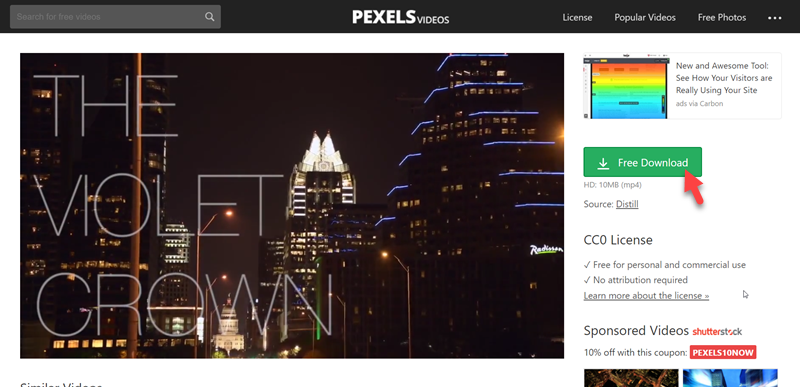 可先預覽看看,喜歡再點 Free Download 下載這個 36 秒的城市夜景。