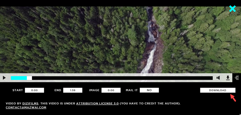 點進去全螢幕預覽,都幫你配好音樂了可點圖示收聽,這段 1:59 秒的空拍片段,除了直接下載還可以設定時間段線上剪輯,非常方便。