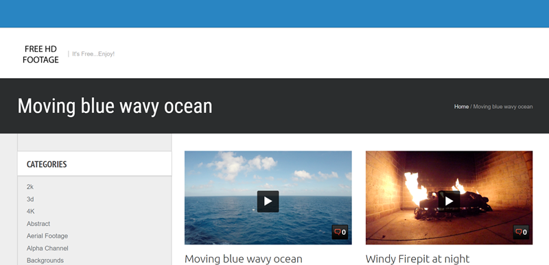 首頁可從左邊選擇分類,像 3D、4K、CG 格式,或是各種自然及人文活動題材,全站免費,不過更新似乎只到今年 1 月。
