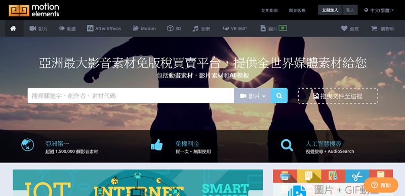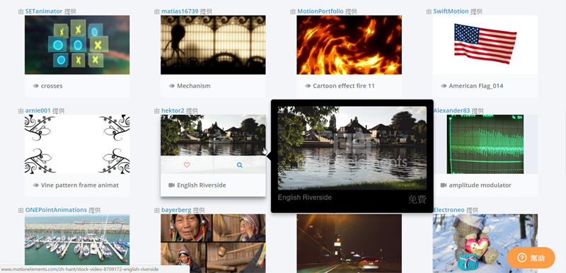 難得看到有繁中顯示的素材網,除了一般類別還有可當背景用的短秒數片段,以及可供 AFTER EFFECTS 使用的檔案,部分需要付費。