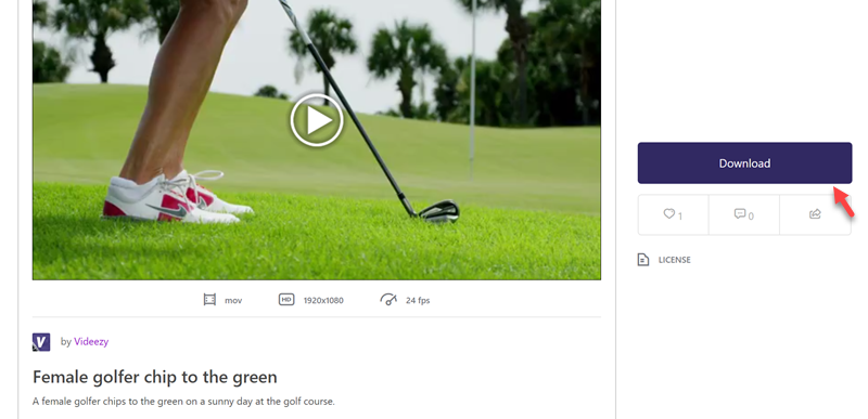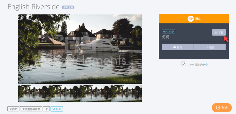 點進去可看到影片簡介的內容,包含長度、大小、比例、解析度都很清楚,縮圖下方還有預覽與下載次數,點 FREE DOWNLOAD 就自動下載。