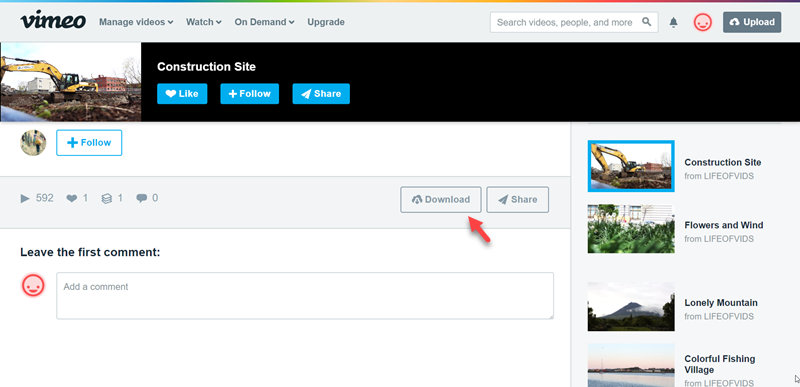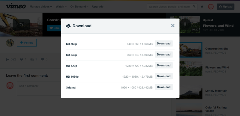 收藏的影片秒數都很短,逛了一下沒看到超過 30 秒的,大小與格式也相同,點 Download 就會快速下載。