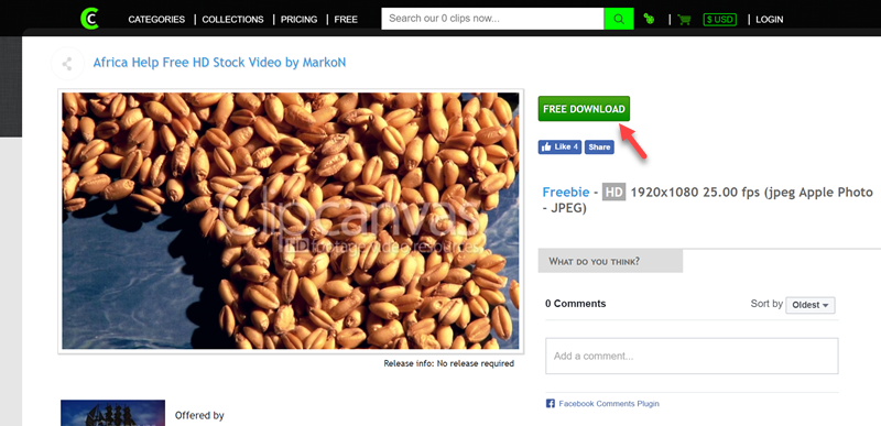 像這個咖啡豆影片只有提供一種大小與格式,點 FREE DOWNLOAD 後會需要輸入 Email 註冊,網站上看影片上有浮水印,下載後開啟是沒有的不用擔心。