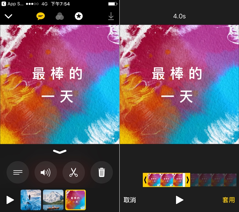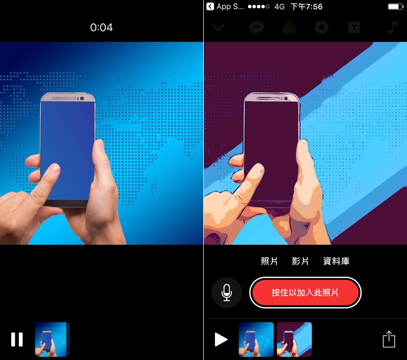 像這樣將原圖與套用濾鏡後的圖配成影片也不錯。