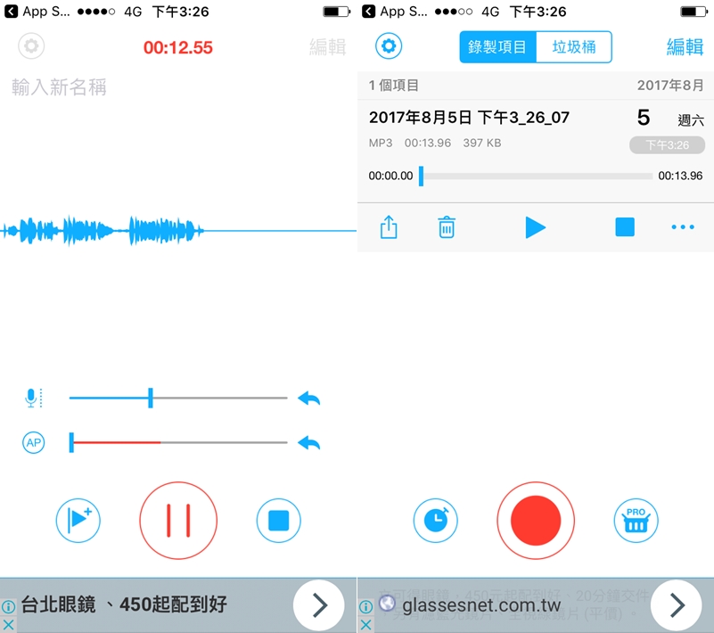 再來看 iOS 版阿湯推薦的兩款,第一款檔案細節都有小字標出,錄製時間點非常清楚,也可定時。