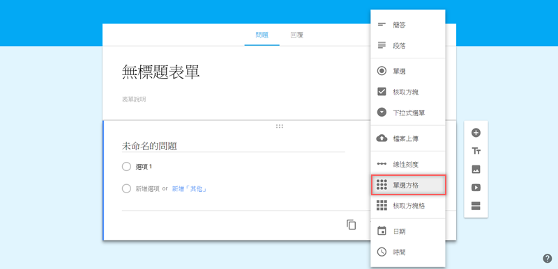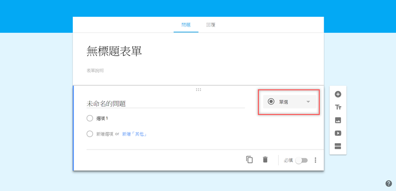 先新增一份表單,點「單選」。