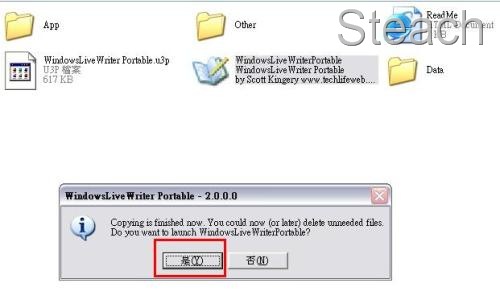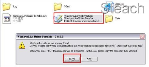 ※這套程式專門用來製作WLW的免安裝版,目前已經開發到3.0版本 但因為3.0版本尚不穩定,站長就不使用了。製作流程:(很簡單哦,輕鬆幾個步驟) 下載WLWPortable2.zip後解壓縮(不需安裝) 執行"WindowLiveWriterPortable"會出現以下畫面,按是