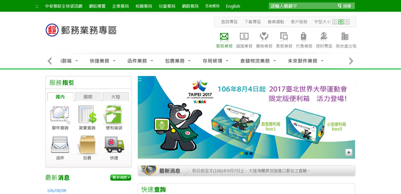 首先當然是最常用的郵局了,現在郵局的服務五花八門,單看基本的寄件功能就分國內、國際、大陸。