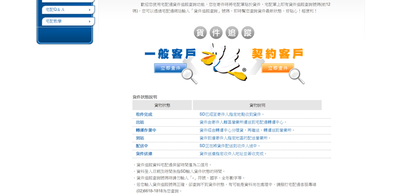 貨件追蹤先選用戶分類再進入查詢,資料保留 2 個月。