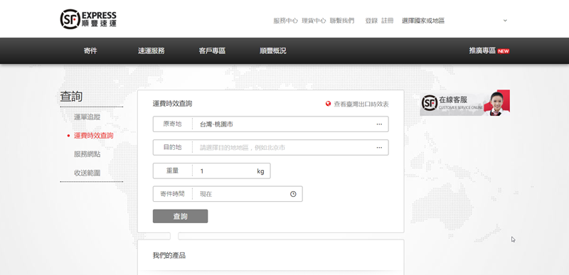 可用貨單或手機號碼追蹤,並可查詢運費時效,其他像報單、報關等有國際配送的貨運該有的服務都有。
