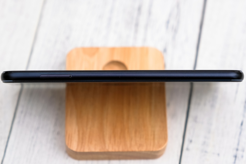 側邊為電源鍵及音量鍵。另外雖然採用雙面玻璃設計,但厚度僅 7.5mm 非常的薄。