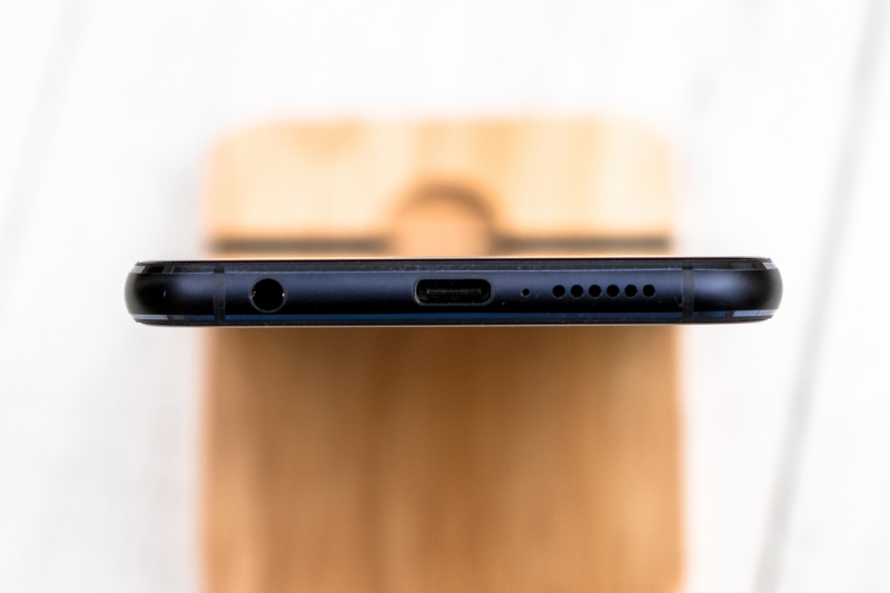 下方為 3.5mm 耳麥孔、USB Type-C 連接埠、降噪麥克風以及喇叭孔(雙喇叭設計)。
