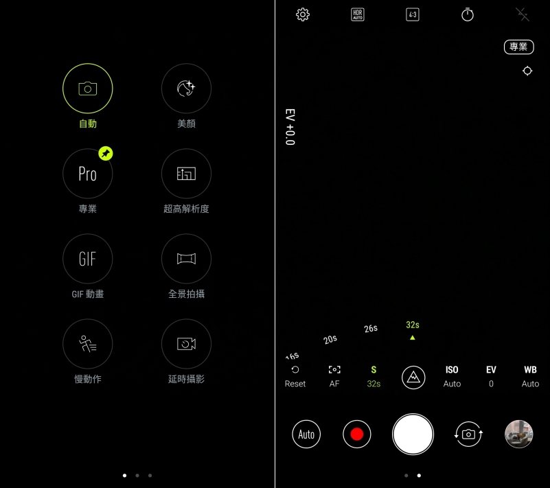 由於這次 ZenFone 4 的鏡頭實在太引起阿湯的興趣,所以就索性的先來和大家分享相機的部份吧,ASUS 的相機功能阿湯應該就不用多介紹,應有盡有,自動模式之外像是美顏模式、專業模式、慢動作、延時攝影等,而用來拍攝夜景的利器專業模式,同樣有著 32 秒的超長快門可以使用,阿湯仍舊期待著有 B 快門的那一天。