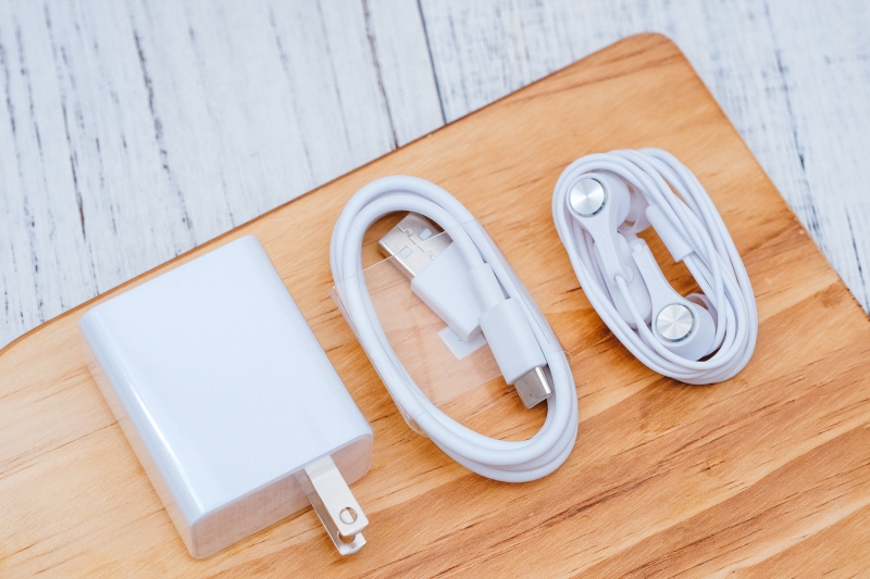 配件包括支援 ASUS 快充的變壓器、USB Type-C 傳輸線,以及立體聲耳機。